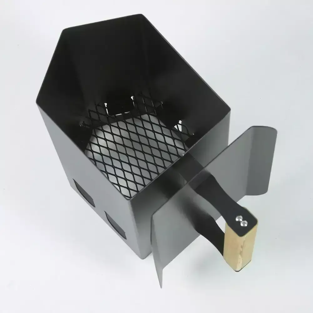 A Caneca para acender churrasqueira, Lareira ou Pit Smoker desenvolvida pela Maxx Diamond é uma maneira fácil e segura de iniciar a queima do carvão e é ideal para evitar acidentes com álcool ou excesso de fogo, possui cabo de madeira para conforto e chapa defletora para evitar excesso de calor na mão durante o uso.