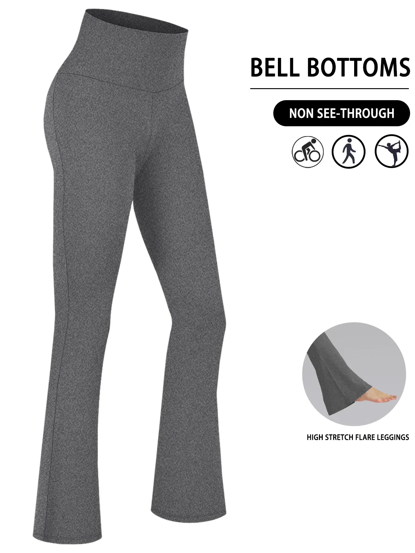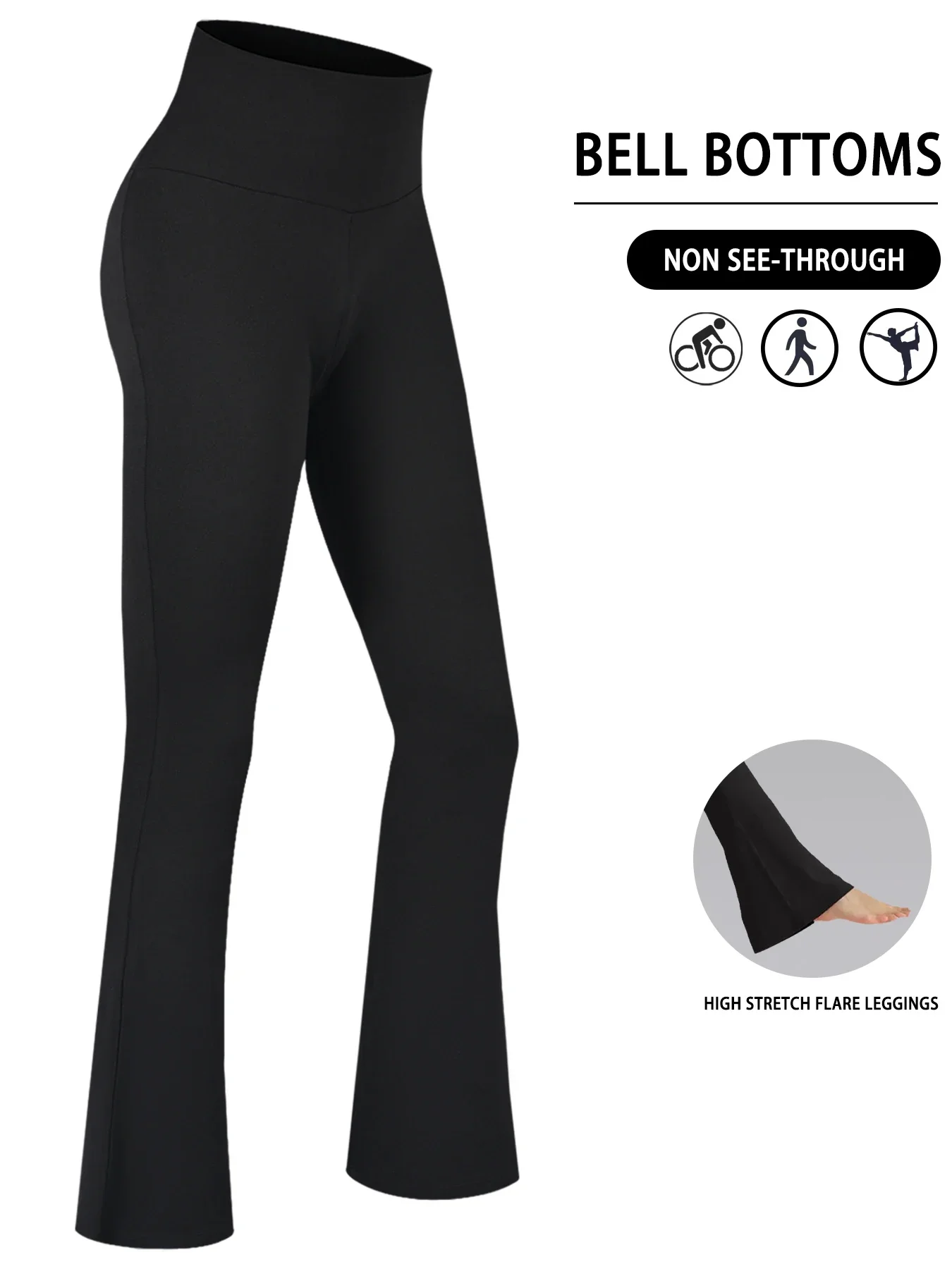 Calças femininas super macias flare cintura alta controle de barriga treino yoga leggings sino bottoms