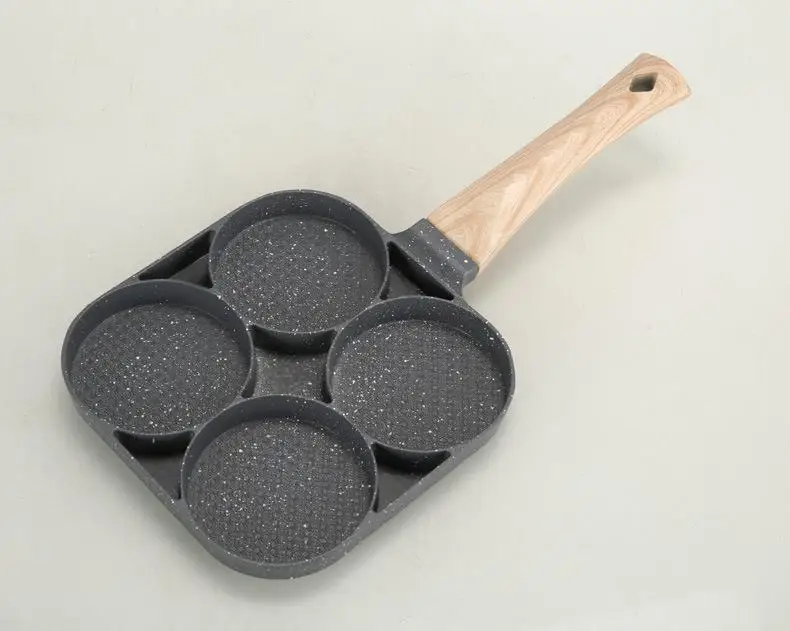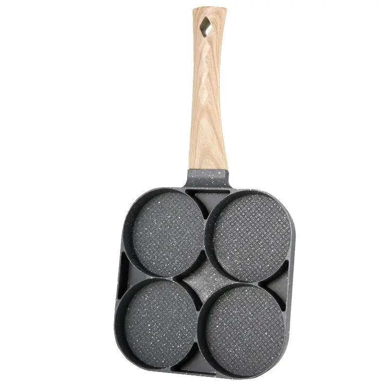 • Design de 4 furos:O design de 4 furos desta panela é perfeito para fazer ovos, omeletes, bifes, hambúrgueres e muito mais, tornando-a uma adição versátil à sua cozinha.