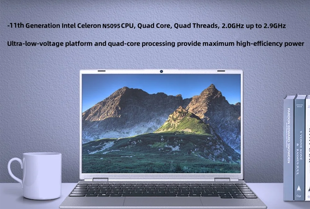 Equipado com 14 polegadas 2K IPS tela estreita de quatro lados, relação tela 92% 1920*1200. O Windows 10 PRO garante uma experiência de usuário mais maravilhosa. Alimentado pelo processador Intel Celeron N5095 CPU Quad Core é enviado aleatoriamente de acordo com os estoques, oferece uma operação suave e uma experiência multitarefa estável. Especificações detalhadas da CPU podem ser referenciadas ao Intel Offical Website. Câmera 0.3MP para capturar momentos memoráveis e imagens de alta qualidade na vida diária. Dual band 2.4GHz / 5.0GHz WiFi suportado, garantido alta velocidade de navegação.