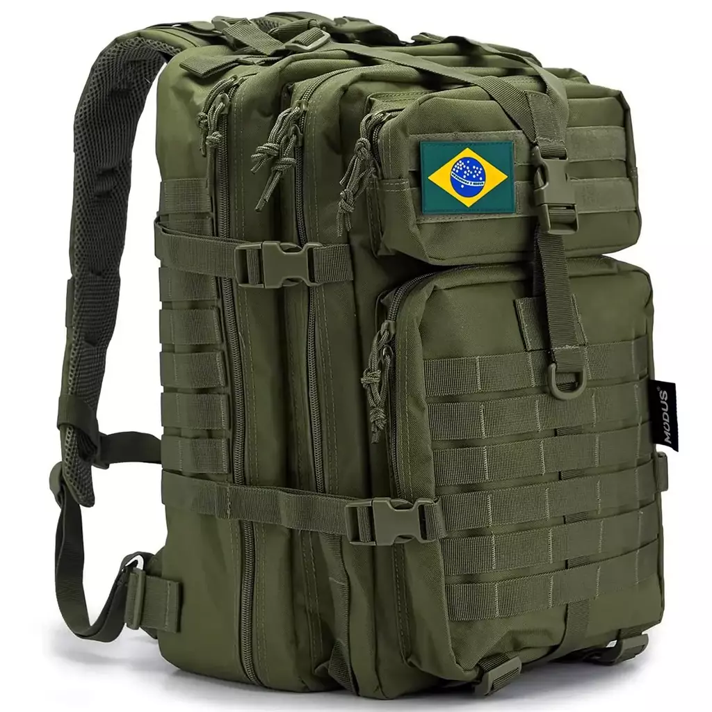 PROJETO MOLLE MODULAR: a mochila tática molle tem um sistema molle em toda a sua extensão. As tiras molle dessa mochila militar molle funcionam perfeitamente para prender bolsas táticas molle adicionais, a frente, os dois lados, a parte inferior e as alças de ombro vêm com tiras de fixação molle, as alças de ombro com dois anéis em D para pendurar algo e as tiras na parte inferior podem ser usadas para prender uma barraca, um colchão de dormir ou outro equipamento externo.