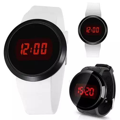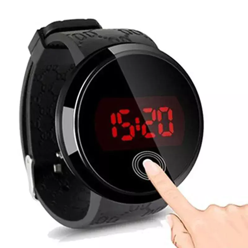 Homens Moda Impermeável LED Round Touch Screen Day Date Silicone Relógio De Pulso relógio digital relógio relógio esportivo |