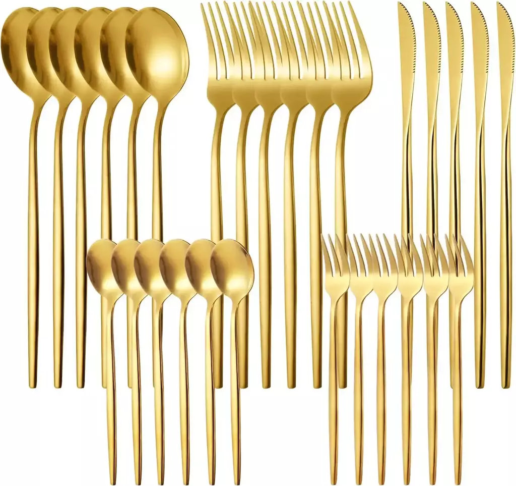 O Conjunto De Talheres De Aço Luxo Inoxidável 24pcs é o presente perfeito para uma inauguração de casa, Chás de Cozinha, dia de Ação de Graças, Natal, e demais comemorações!