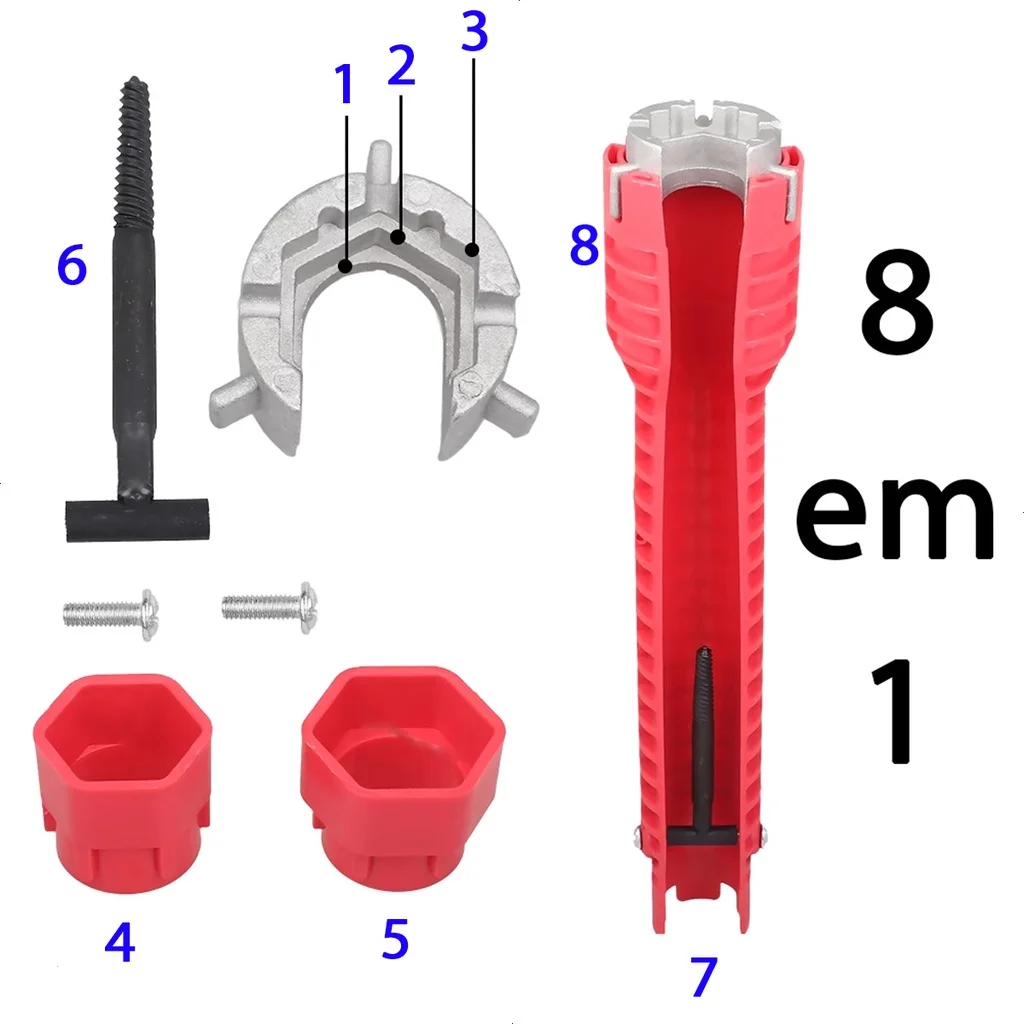 Nova cabeça de boca antiderrapante 8 em 1 kit de reparo de pia de cozinha, cor de boca antifurto para torneira, cano de água, aquedor de água, ferramentas domésticas