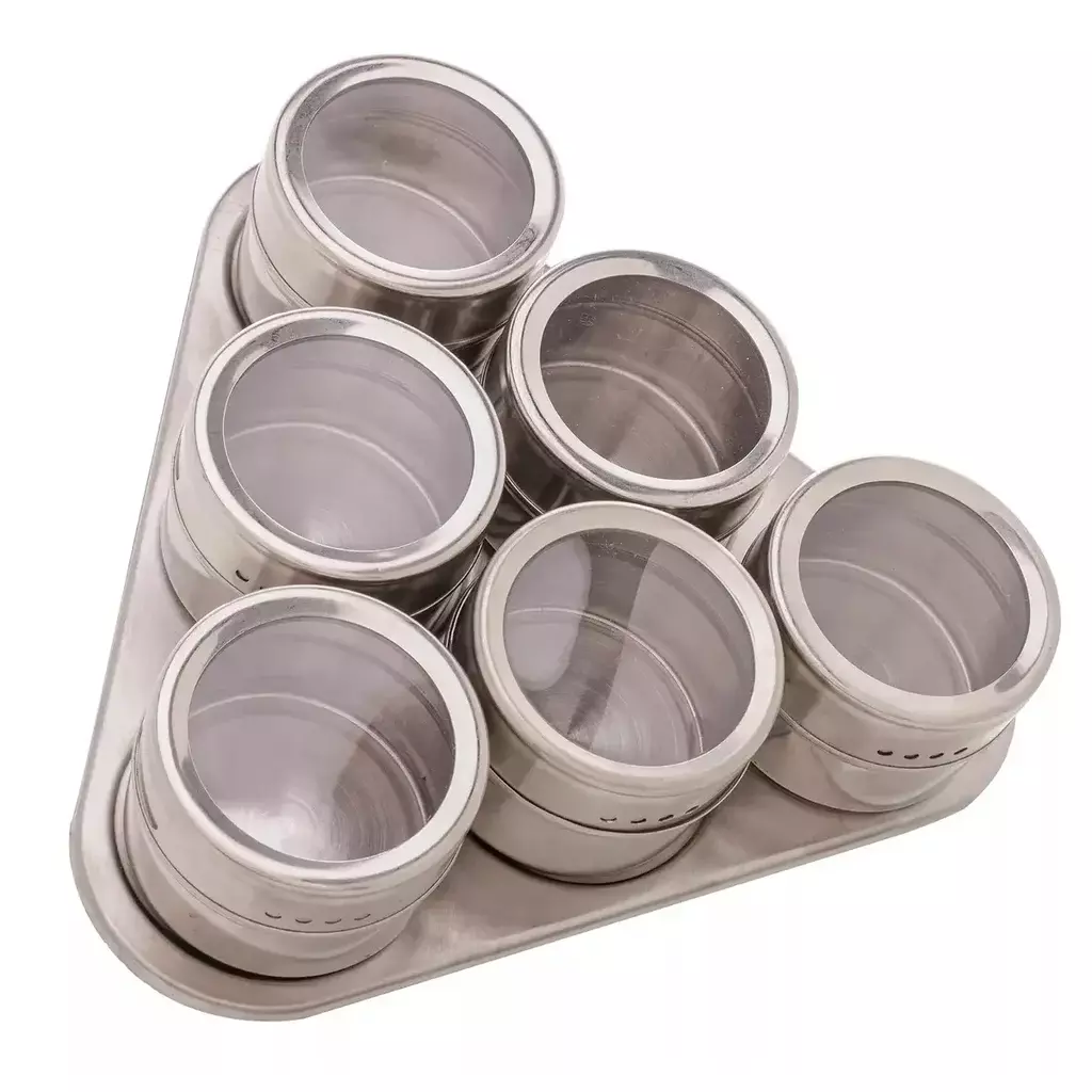 Conjunto De Porta Temperos Magnético Em Aço Inox Base Com Ímã Gruda Na Geladeira.
